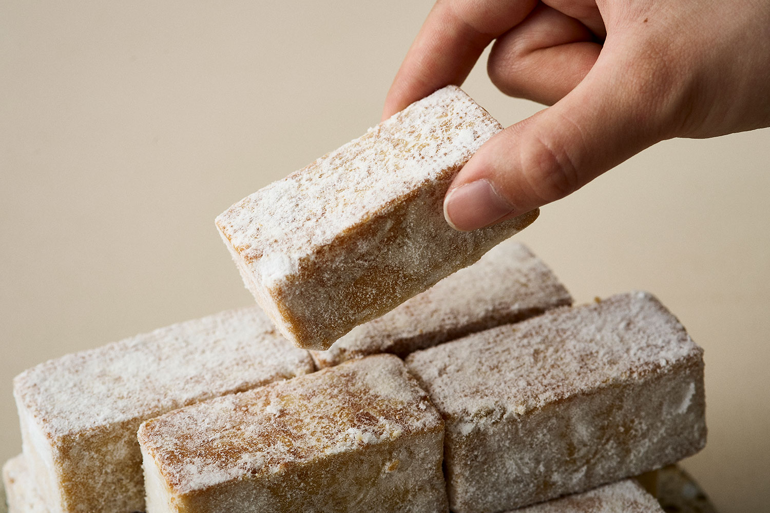 秋保の良質な土壌で、農薬を一切使わずに愛情こめてつくった小松菜を生地にたっぷりと練り込んだフィナンシェです。天然のグリーンが鮮やかな小松菜のホロ苦さと焦がしバターの香り、甜菜糖の優しい甘さが特徴の贅沢なスイーツです。